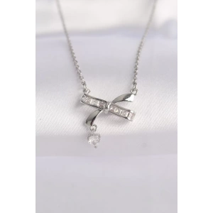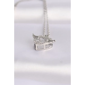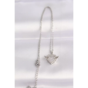 316L Çelik Zincir Gümüş Renk Zirkon Taşlı Kanatlı Kalp Kolye