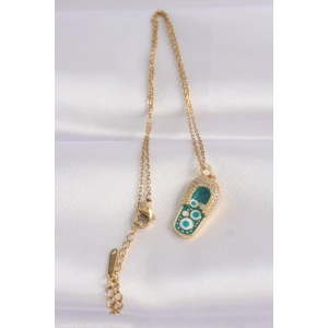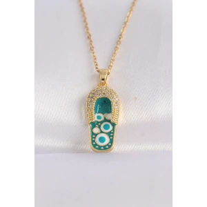 316L Çelik Zincir Zirkon Taşlı Altın Renk Nazarlı Terlik Tasarımlı Kolye