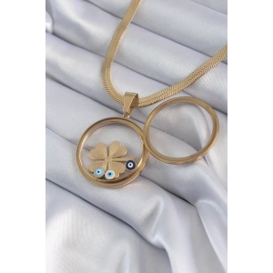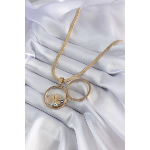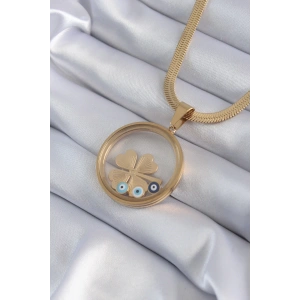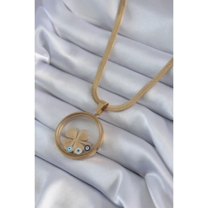 316L Çelik Gold Renk İtalyan Zincir Açılabilir Fanus Yonca Figür Model Kadın Kolye