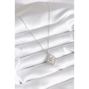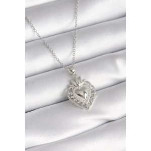 316L Çelik Gümüş Renk Zirkon Taş Detay Taç Kalp Model Kadın Kolye