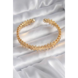 316L Çelik Gold Renk Arpa Model Zirkon Taş Detay Çeyrek Altın Takılabilir Kadın Kelepçe