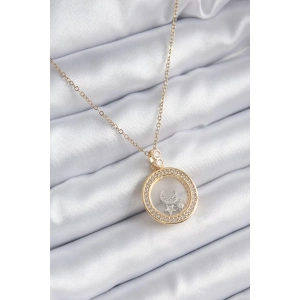 316L Çelik Gold Renk Zirkon Taş Detay Ay Yıldız Fanus Model Kadın Kolye