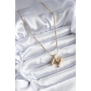316L Çelik Gold Renk Bubble "M" Harf Model Kadın Kolye
