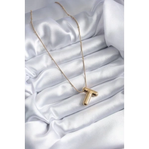 316L Çelik Gold Renk Bubble "T" Harf Model Kadın Kolye