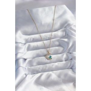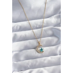 316L Çelik Gold Renk Zincir Zirkon Taş Detay Hilal Yıldızı Figür Kadın Kolye