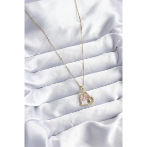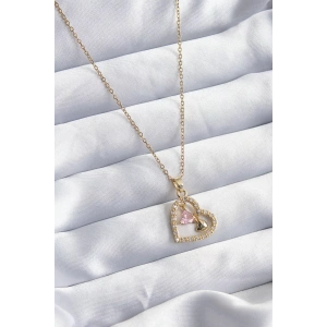 316L Çelik Gold Renk Zincir Zirkon Taşlı Kalp Model Kadın Kolye