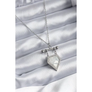 316L Çelik Gümüş Renk Zirkon Taş Detay Kadın Kolye