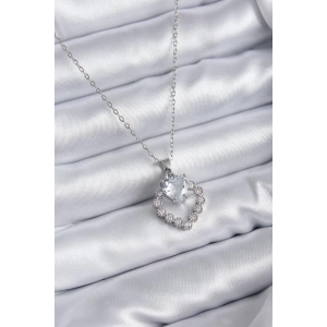 316L Çelik Zincir Gümüş Renk Zirkon Taşlı Kalp Model Kadın Kolye