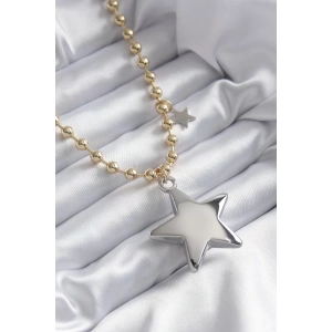 Pirinç Gold Renk Topçuk Zincir Gümüş 3D Yıldız Model Yıldız Detay VİP Kadın Kolye