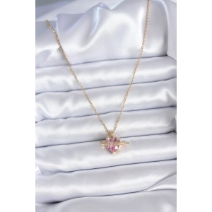 316L Çelik Gold Renk Zincir Pembe Kristal Kalp Model Zirkon Taş Detay Kadın Kolye