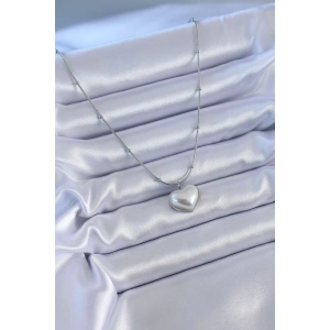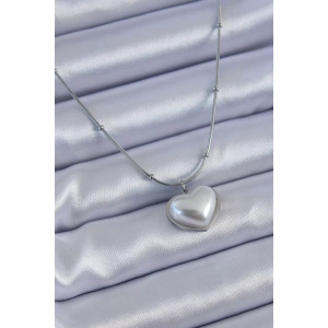 316L Çelik Gümüş Renk İncili Kalp Model Minimal Top Detay Kadın Kolye