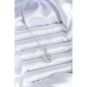 316L Çelik Gümüş Renk Zirkon Taşlı Ay Yıldız Model Kadın Kolye