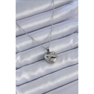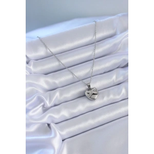 316L Çelik Gümüş Renk Zirkon Taşlı Kalp Model Kadın Kolye