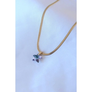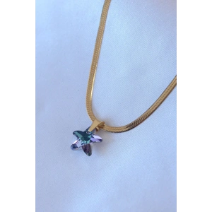 316L Çelik Gold Renk İtalyan Zincir Model Kristal Deniz Yıldız Model Kadın Kolye