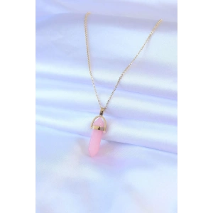 316L Çelik Gold Renk Kristal Pembe Taş Model Kadın kolye