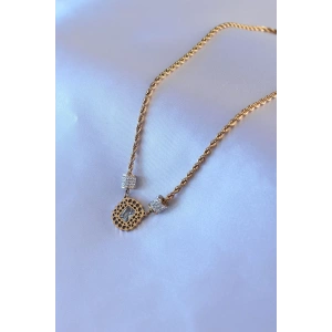 316L Çelik Gold Renk Lotus Model Zirkon Taşlı Burgu Zincir Kadın Kolye