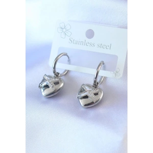 316L Çelik Gümüş Renk Zirkon Taş Detay Kalp Model Kadın Küpe