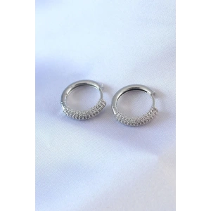 Gümüş Renk Zirkon Taşlı Halka Model Pirinç Kadın Küpe