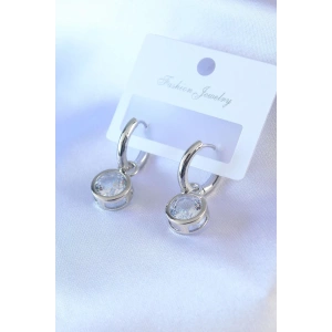 Gümüş Renk Zirkon Taşlı Pirinç Kadın Küpe