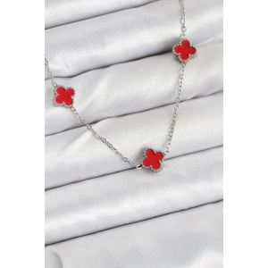 316L Çelik Zincir Gümüş Kırmızı Renk Yonca Kadın Kolye
