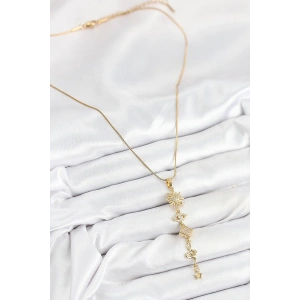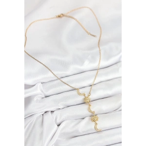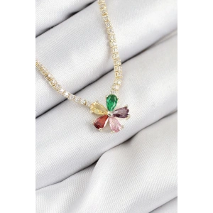 Pirinç Zirkon Taşlı Su Yolu Asorti Çiçek Model Gold Renk Kadın Kolye