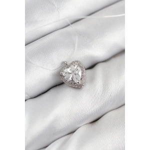 Pirinç Charm Zirkon Taşlı Kalp Model Gümüş Renk Kadın Bileklik