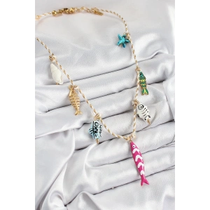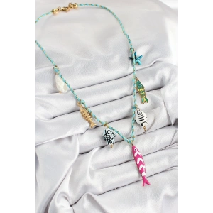 Seramik Motifli Pembe Balık Figürlü Model Krem İp Kadın Kolye