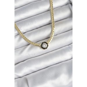 Pirinç Gold Renk Zirkon Taşlı Kadın Kolye