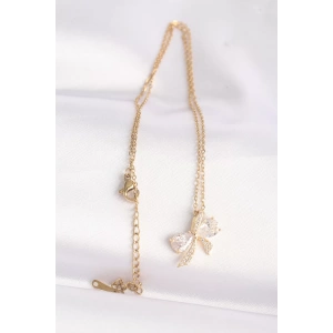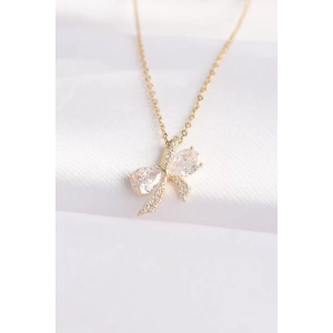 316L Çelik Zincir Altın Renk Zirkon Taşlı Fiyonk Kolye