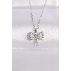 316L Çelik Zincir Gümüş Renk Zirkon Taşlı Kalp Detay Fiyonk Kolye