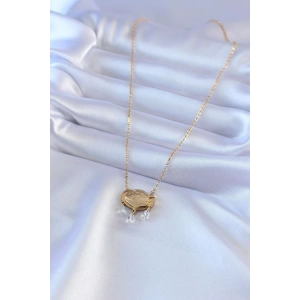 316L Çelik Gold Renk Kristal Pembe Taş Model Kadın kolye