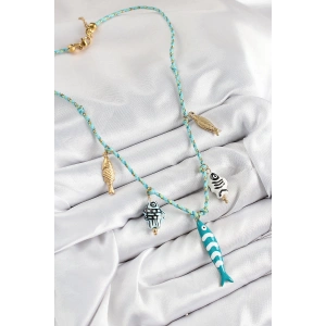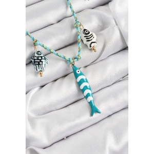 Seramik Motifli Balık Figürlü Model Mavi İp Kadın Kolye