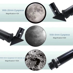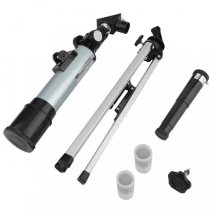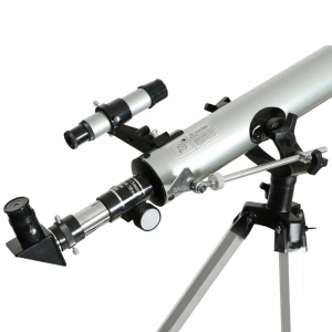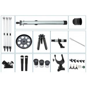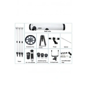 900x60 Uzay Teleskobu 1000m/4m 900x60 serisi teleskoplar, astronomi ve yeryüzü gözlemlerine ilk adım atmak isteyen çocuklar ve aileler için çok uygun giriş seviyesi teleskoplardır. Kolay kurulum özellikleri ile pratik kullanım sağlarlar. Hızlı ve kolay kurulum pürüzsüz izleme için yavaş hareket kontrolleri karasal ve astronomik kullanım için idealdir gelişmiş resim parlaklığı ve netlik için yüksek iletim kaplamalar ile tamamen kaplanmış cam optik bileşenler 900x60 Profesyonel Uzay Teleskobu ile yıldızlar ve gökyüzünü izlemek artık çok kolay. 900x60 Profesyonel Uzay Teleskobu 1 km yi 4 metreye kadar yakınlaştırarak net bir görüş sağlar. Artık sizde bilim adamları gibi Ayı, Yıldızları, Uzayı kısaca gökyüzünde görülmeye değer ne varsa hepsini yakından görebilir ve yeni keşiflerde bulunabilirsiniz Üstelik yeryüzü de gözlenebilir. Yeryüzünü izleyebilirsiniz fakat bütün aynalı teleskoplar ters göstermektedir. Düz görmek istiyorsanız extra aparat olması gerekmekte. ( Karayı düz gösteren aparat dahil değildir. ) Tasarımı şık, kullanımı kolay ve güvenilirdir, Çok az bakım gerektirir Teknik Özellikler : 675X Büyütme 3 oküler Barlow lens Ay filtresi Tüp uzunluk : 90 cm Tüp çapı : 6 cm Tripod Akromatik refratör optik çapı : 90 mm Odak uzunluğuOdak oranı : 900 mm Nişanlama dürbünü : 5x Oküler : H 20mm, H 12.5mm, H 4mm