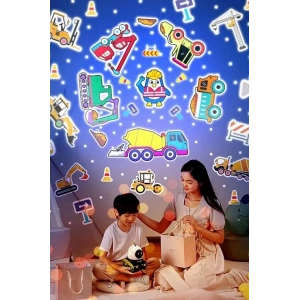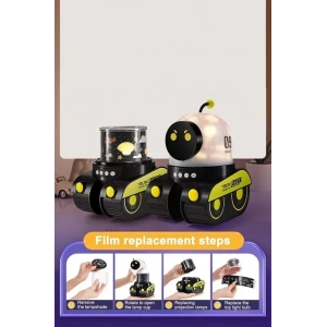 Robot Projeksiyon Gece Lambası Hoparlörlü Şarjlı Yıldızlı Gökyüzü Temalı Led Projeksiyon Lambası