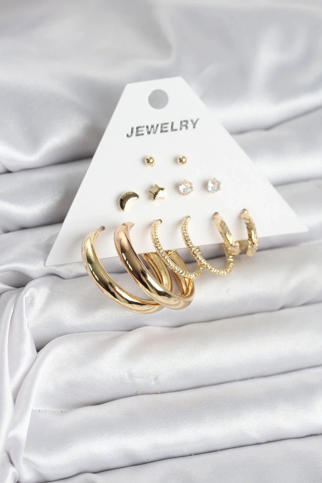 Gold Renk 6 Çiftli Pirinç Kadın Küpe Seti