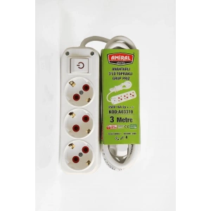 Amiral 3' Lü Topraklı 3 Metre Kablolu Grup Priz