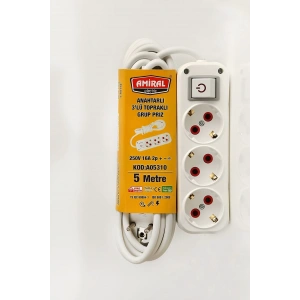 Amiral 3' Lü Topraklı 5 Metre Kablolu Grup Priz