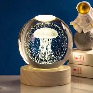 Dekoratif Samanyolu Tasarımlı Ahşap Altlıklı Işıklı Cam Küre Cam:6cm Ahşap:2cm