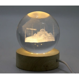 3d Kristal Cam Küre Ahşap Soketli İstanbul Temalı Led Lamba Aalk2575