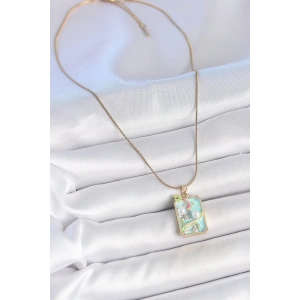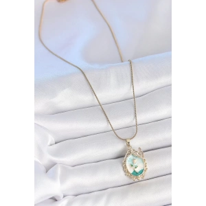 316L Çelik Gold Renk Zincir Mix Renk Mineli Çiçek İşlemeli Zirkon Taş Detaylı Portre Model Kadın Kolye