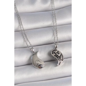316L Çelik Gümüş Renk Zincir Zirkon Taşlı Ying Yang Model Gün Batımı İşlemeli Arakdaşlık Kadın Kolye