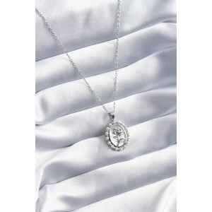 316L Çelik Gümüş Renk Gül Model İnci Detay Kadın Kolye