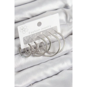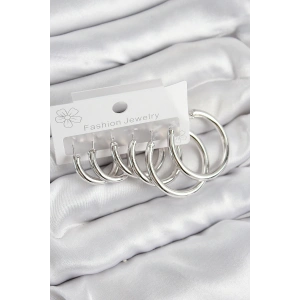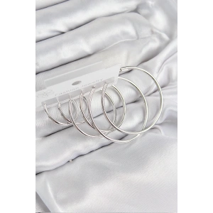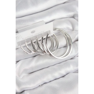 Pirinç Halka Model Gümüş Renk Kadın Set Küpe