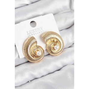 Pirinç İnci Detaylı Girdap Model Gold Renk Kadın Küpe