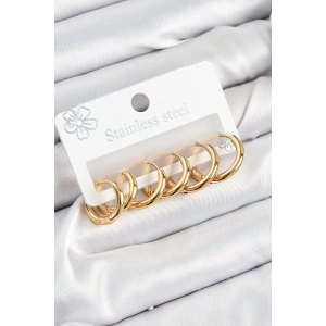 316L Çelik Halka Model Gold Renk 3'lü Set Kadın Küpe