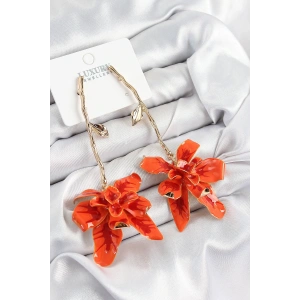 Pirinç Sallantılı Kırmızı Çiçek Model Gold Renk Kadın Küpe
