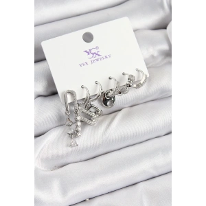 Pirinç Zİrkon Taşlı Kelebek ve Yıldız Model Gümüş Renk 3'lü Çift Kadın Küpe