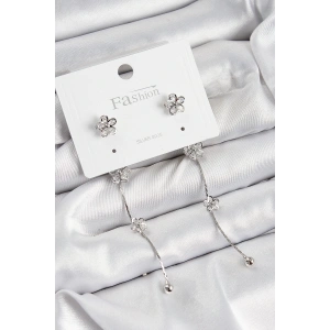 Pirinç Zirkon Taşlı Sallantılı Çiçek Model Gümüş Renk 925 Ayar Gümüş Çivi Kadın Küpe