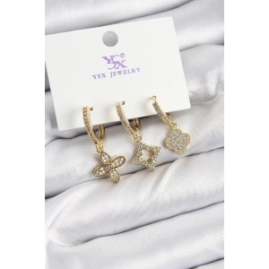 Pirinç Zİrkon Taşlı Yonca Model Gold Renk 3'lü Kadın Küpe