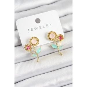 Pirinç Renkli Zirkon Taşlı Papatya Model Gold Renk Kadın Küpe
